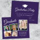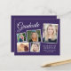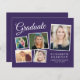 Modern budget-friendly purple graduation party invitation postcard featuring a 5 photo collage, "Graduate" in an elegant white script, and the grad's name, school and class year in simple white typography. Add your party details on the back. This budget semi-gloss paper is similar in weight to photo paper. A larger 5x7 traditional card stock version is also available (message us for the link).
