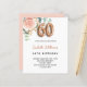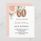 An elegant invitation for a 60th birthday party. A chic white background. Decorated with a rose gold and blush pink watercolored rose flower, floral, green eucalyptus leaves, sprigs, greenery and faux gold sprigs. Personalise and the name and party details. Black and golden letters. The name is written with a modern hand lettered style script. Number 60 is written with a golden balloon style font.