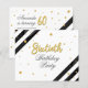Modern Gold Glitter Black White 60th Birthday Party Invitation. Send out the invitations for the upcoming milestone party with our Budget Geometric 60th Birthday Glitter Black White Stripe Invitation. Featuring beautiful botanical watercolor bloom. Completely personalise this card with the party details by clicking the customise it button to further re-arrange and format the style and placement of the text.
