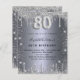 A modern, stylish and glamorous invitation for a 80th birthday party. A faux silver looking background, decorated with glitter dust. Personalize and add your name and party details. Number 80 is written with a balloon style font, script.