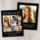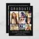 Elegant budget-friendly black graduation announcement to celebrate the graduate featuring "GRADUATE" across the top in large white typography, a seven photo collage and his or her name, class year and school in modern white typography. On the back add an additional photo and a custom message.