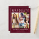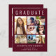 Elegant budget-friendly dark burgundy red graduation announcement with "GRADUATE" across the top in large white typography, a seven photo collage and their name, class year and school in modern white typography. On the back add an additional photo and a custom message.