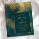 This elegant, moody wedding invitation features a modern abstract teal and gold watercolor background. Customise the gold-coloured text in stylish fonts on a dark teal rectangle. The abstract design is repeated on the back of the card.