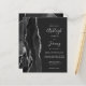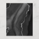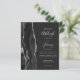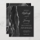 The left-hand edge of this elegant modern wedding invitation features a black watercolor agate border trimmed with faux silver glitter. The customisable text combines handwriting, copperplate and italic fonts in light silver grey on an off-black background. The reverse side features a matching black and silver agate design.