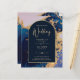 Budget Agate Blue Gold Wedding Invite QR Code RSVP