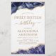 Budget Agate Geode Navy Blue and Gold Foil Birthday Party Invitations - includes modern beautiful and elegant script for the special Sweet Sixteen (16th) Birthday Celebration.