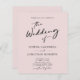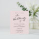 Trendy All in One Budget Modern Black Calligraphy Script Blush Pink Wedding Invitation... Our trendy affordable "front and back" blush and black wedding invitation features chic modern calligraphy script combined with serif and sans serif text for a simple classic wedding invitation. The back of the invitation contains all of the details you would typically see on separate cards in the wedding packet. This modern style wedding invitation was designed to be both trendy and budget conscious... not to mention time-saving for busy brides-to-be. On the back there is also an example QR code graphic you can replace - in seconds - with your own QR code right on the personalisation template. All example text (aside from the graphic calligraphy elements) can be easily revised with your own information on the personalisation template.