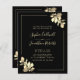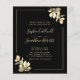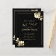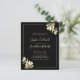 Budget All in One Gold Eucalyptus Elegant Black Wedding Invitation... Our affordable "All in One" botanical wedding invitation features a gold text frame with faux gold eucalyptus branches bordering your invitation text on an elegant black background. The back of this unique invitation contains all of the details you would typically see on separate cards in the wedding packet. This modern style wedding invitation was designed to be both elegant and budget conscious... not to mention time-saving. All example text can be easily revised with your own information on the personalisation template.