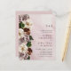 Budget All in One Monogram Moody Floral Border Wedding Invitation... Our affordable "All in One" moody floral wedding invitation features an elegant border of oil painted cream, burgundy, and mauve flowers next to your invitation text... all on an oil painting background in shades of blush and rose gold. The back of the card contains all of the details you would typically see on separate cards within the wedding packet. This modern style all-in-one wedding invitation was designed to be both elegant and budget conscious... not to mention time-saving. On the back there is also a QR code graphic template you can replace with your own code (or delete if you don't plan to use one). All example text can be easily revised with your own information on the personalisation template.