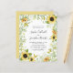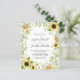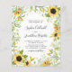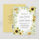 Budget All in One Sunflowers and Foliage Wedding Invitation... Our affordable "All in One" floral and greenery wedding invitation features an intricate arrangement of yellow sunflowers and delicate green foliage bordering your personalised wedding invitation text. The back of the invitation contains all of the details you would typically see on separate cards in the wedding packet. This modern style wedding invitation was designed to be both elegant and budget conscious... not to mention time-saving. On the back there is also a QR code graphic template you can replace with your own code (or delete if you don't plan to use one). All example text can be easily revised with your own information on the personalisation template.