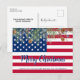 Send Merry Christmas greetings to friends and family with this unique USA American Flag Christmas Card - USA American flag design modern red white blue design with holly and berries. Personalise with family name. This patriotic Christmas card is perfect for military families, veterans, patriotic family and veteran service department christmas cards. COPYRIGHT © 2022 Judy Burrows, Black Dog Art - All Rights Reserved. Budget American Flag Military Christmas Patriotic Postcard
