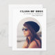 Celebrate your graduate with this contemporary budget-friendly graduation announcement. His or her photo is in an arch frame, the class year is written in bold trendy typography and you can add his or her name, school and class year in simple typography.