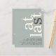 At Last QR Code Sage Ivory Text Engagement Party Announcement and Invitation. A budget price SMALLER 4.5” x 5.6” alternative. Available in a SEMI-GLOSS 110 lb CARD STOCK which is the default option (thicker for invitations), OR a SATIN FINISH 80 lb THINNER PAPER STOCK (ideal for enclosures). A modern typographical design, with At Last in large typography rotated and to the right hand side at the top, in ivory with grey for the letter "s" on a background of soft sage green. The background colour can be changed on each side if you wish via Customise further. This version of the invitation is with parties in mind taking place in a hotel or restaurant (or any venue with a website), replace the QR code on the back with a QR code to their website to make it convenient for guests to find directions etc. You can create QR codes for free online. Search “QR code creator” and lots of options come up to create for free. You can also delete the QR code and text on the back if not required via customise further.