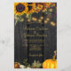 Rustic country traditional harvest fall sunflowers, autumn flowers and pumpkin BUDGET affordable wedding invitation card on a dark brown barn wood like background with string lights. +++++++++++++++++++++++ Ideal for farmhouse barn outdoor backyard weddings.