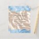 The top and bottom edges of this elegant modern wedding invitation feature a pastel baby blue watercolor agate border trimmed with faux gold glitter. The customisable text combines handwriting, sans serif and italic fonts in charcoal grey on a background image of ivory silk. The reverse side features a matching baby blue agate and ivory silk design.