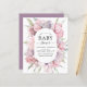 Budget Boho Dusty Pink and Purple Floral Botanical Greenery Watercolor Baby Shower Spring or Summer Invitations - includes beautiful and elegant script typography with modern botanical flowers and greenery for the special Mother to Be celebration for a new baby boy, baby girl or gender neutral announcement.
