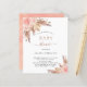 For a modern boho style baby shower. A stylish white background. Decorated with rose gold and pink florals, roses and pampas grass. Personalise and add a name and party details.