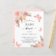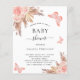 For a modern boho style baby shower. A white background on the front. Decorated with rose gold and pink florals, roses, pampas grass and butterflies. Personalise and add a name and party details.