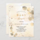 For an elegant Baby Shower. A golden watercolored background decorated with golden eucalyptus and faux gold glitter dust. Personalise and the name of the mum to be and party details. Black and golden coloured letters.