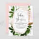 Budget Greenery Botanical Watercolor and Rose Gold - Blush Pink Geometric Spring Baby Shower Invitations on white background - includes beautiful and elegant script typography with modern botanical leaves and greenery for the special Mother to Be celebration.