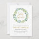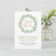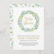 Elegant floral baby shower invitation features a wreath of watercolor eucalyptus and greenery with the words baby shower in script lettering. Back of card is decorated with leaf pattern. Personalise it with your baby shower details.Designed for you by Blackberry Boulevard.