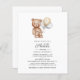 Budget Baby Shower Script Bear Balloons Invitation. Trendy and cute gender neutral baby shower invitation card featuring a baby bear with balloons. Perfect for boys and girls baby showers.