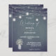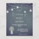 Save money on invitations with this smaller invitation that has an option for envelopes. Get your guests ready for the amazing wedding with this Baby's Breath Floral, Blue Grey Chalkboard, & Mason Jar String Lights wedding invitation.