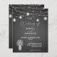 Save money on invitations with this smaller invitation that has an option for envelopes. Get your guests ready for the amazing wedding with this Baby's Breath Floral, Grey Chalkboard, & Mason Jar String Lights wedding invitation.