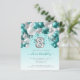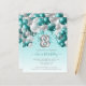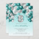 This festive girl's 8th birthday invitation features a teal and silver balloon arch garland over a silver faux foil balloon number "8" and teal ribbon and confetti. Personalise the text with your child's name and birthday in elegant teal handwriting script and the other party details in grey sans serif font on a pale teal ombre background.