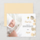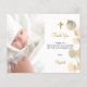 A modern and elegant baptism thank you card. A chic white background decorated with golden eucalyptus foliage. Personalise and add your photo of the child, thank you note and name. Gender neutral.