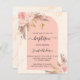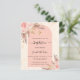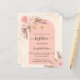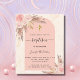 An arch frame and rose gold marble print as background. Decorated with rose gold and pink florals, roses and pampas grass. Personalise and add a name and details.