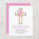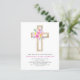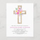 Budget Pastel Pink, Orange and Purple Spring Floral Flowers Cross Botanical Watercolor Christian Religious Baptism Invitations.