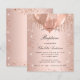 A rose gold faux metallic looking background. Decorated with rose gold, pink faux glitter drips, paint dripping look and balloons. Personalise and add a name and details. The name and the text: baptism are written with a hand lettered style script