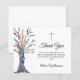 This Budget Baptism Thank You Card features a tree of life design in the colours of the rainbow and a cross.