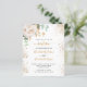 For the baptism of 2 children. A white background decorated with eucalyptus greenery, a white rose, and golden leaves and faux gold glitter drops. Personalise and the children's names and ceremony details. Black and golden coloured letters. Gender neutral.