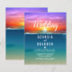 Budget beach destination wedding invitations featuring a beautiful sunset, the tropical ocean, underwater seabed, and a modern wedding template.