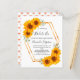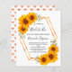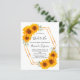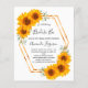 A stylish white background. A faux gold geometric frame. With the text: Bride to Bee and the name of the bride on front written with a modern hand lettered style script. Black letters.