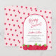 Are you planning a summer baby shower? This charming girl's strawberry-themed baby shower budget invitation is decorated with red watercolor strawberries and a stylish arch design. It says Berry Sweet in elegant script typography. The back features a strawberry pattern on a soft pink background.