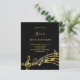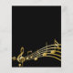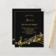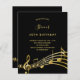 A trendy, modern 70th (or any age) birthday party invitation card for both men and women. A classic black background and music notes, golden coloured letters. Personalise and add your party information. Back: Black colour faux gold music notes.
