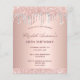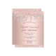 A modern, stylish and glamourous invitation for a woman's 50th (or any age)birthday party. A rose gold gradient background with rose gold, blush and silver glitter drip, paint dripping look. Personalise and add a name and paryt details. The name is written with a modern dark rose gold coloured hand lettered style script.
