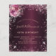 For an elegant 40th (or any age) birthday party. A burgundy faux metallic looking background colour. Decorated with pink faux glitter dust and florals. Personalise and add a name, age and party details. The name is written with a hand lettered style script