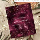 For an elegant 40th (or any age) birthday party. A burgundy agate background. Decorated with rose gold faux glitter, sparkles. Personalise and add a name and party details. The name is written with a hand lettered style script