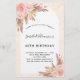 For a modern, elegant 40th (or any age) birthday party. An arch frame and rose gold marble print as background. Decorated with rose gold and pink florals, roses and pampas grass. Personalise and add a name and details.