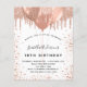 For an elegant 18th (or any age) birthday party. A white background. Decorated with rose gold, faux glitter drips, paint dripping look and balloons. Personalize and add a name, age and party details. The name is written with a hand lettered style script