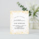 For an elegant 21st (or any age) birthday. A stylish white background. Decorated with faux gold glitter dust. Personalise and add a name, age and party details. The name is written with a hand lettered style script