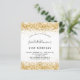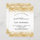 For an elegant 21st (or any age) birthday. A stylish white background. Decorated with faux gold glitter dust. Personalize and add a name, age and party details. The name is written with a hand lettered style script