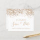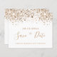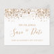 A girly and trendy Save the Date card for a 40th (or any age) birthday party. A stylish white background decorated with faux gold glitter dust. Personalize and add a date and name and text. Golden colored letters. The text: Save the Date is written with a large trendy hand lettered style script.