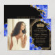 Budget Black Blue Gold Floral Photo Quinceanera Card