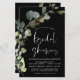 Budget Black Eucalyptus Greenery Succulent Botanical Watercolor Spring Wedding Bridal Shower Invitations on white background - includes beautiful and elegant script typography with modern botanical leaves and greenery for the special Bride to Be celebration.