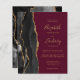 The left-hand edge of this elegant modern wedding invitation features a black watercolor agate border trimmed with faux gold glitter. The customisable text combines gold-coloured handwriting, copperplate and italic fonts on a burgundy background. The reverse side features a matching black and gold agate design. NOTE: Envelopes are not automatically included with these budget invitations, so please remember to choose the "white envelopes" option!
